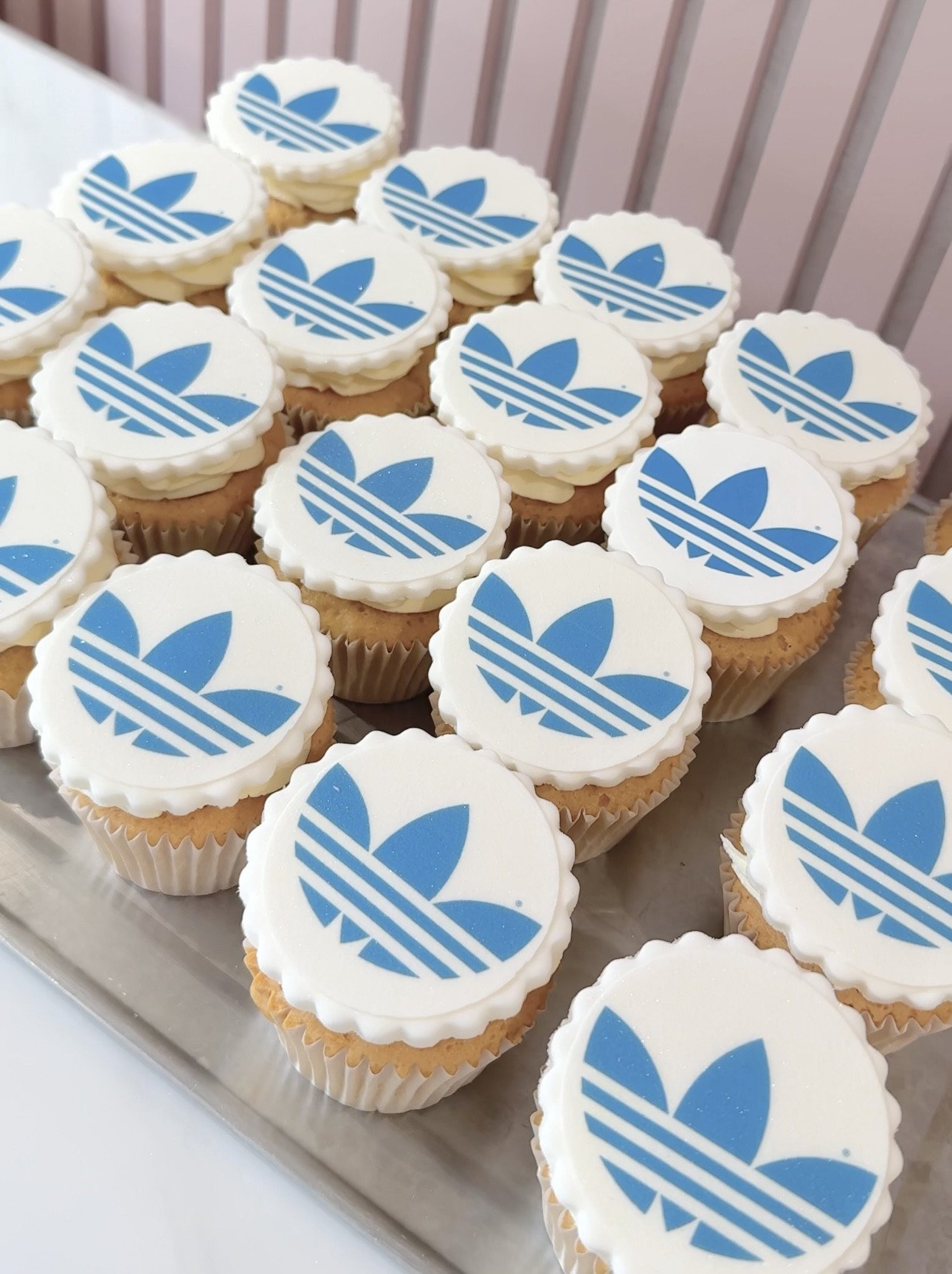 These Adidas-inspired cupcakes are designed for true fans of the brand. Finished with crisp edible logo toppers and smooth buttercream swirls, they offer a bold, clean look that feels instantly recognisable. A popular choice for birthdays and celebrations where style and brand loyalty matter just as much as the cake itself.