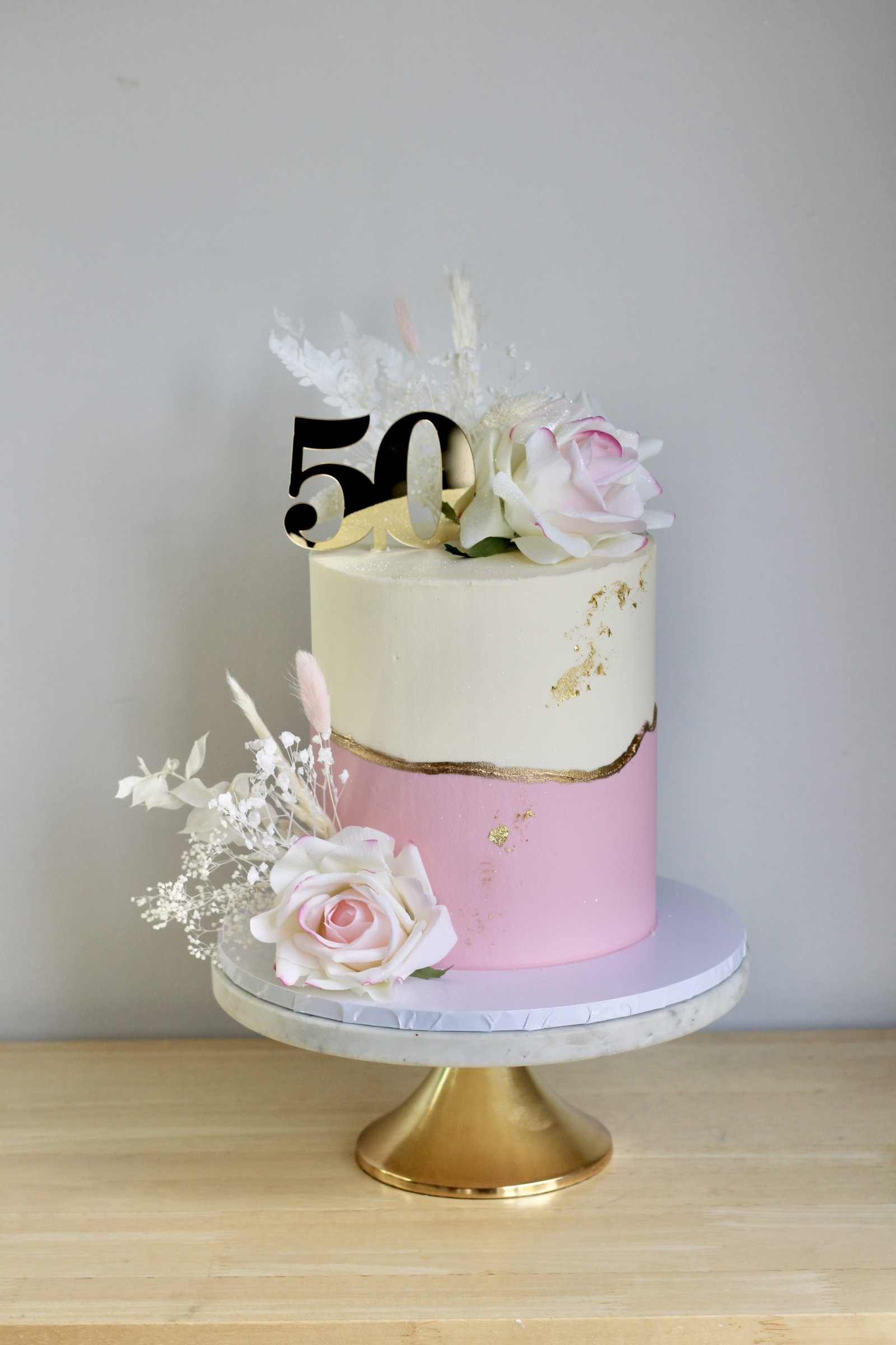 The Blush Harmony Cake V1 is a timeless masterpiece, designed for those who appreciate understated elegance. This single-tier cake features a graceful ombré blend of ivory and soft pink, accented with delicate artificial roses and golden touches for a refined finish. A scattering of dried florals and shimmering details make this cake a stunning choice for birthdays, anniversaries, and special celebrations.