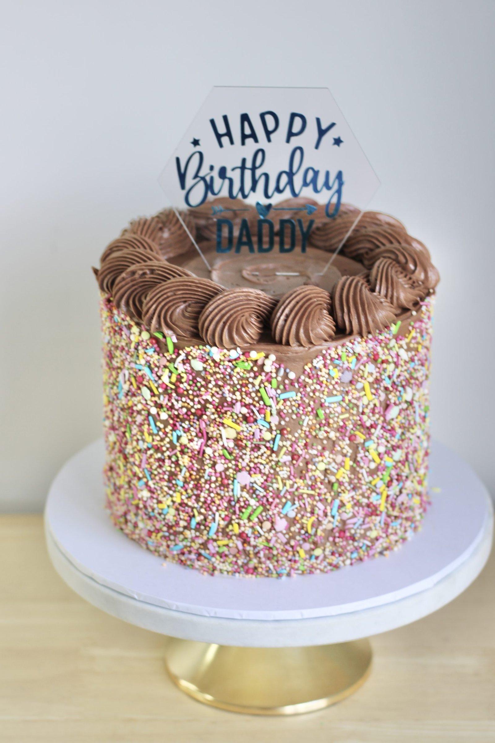 Bright, fun, and full of chocolatey goodness, our Chocolate Sprinkle Cake is perfect for any joyful occasion! Covered in a smooth chocolate buttercream base and coated in a vibrant mix of colourful sprinkles, this cake is a feast for the eyes and the taste buds. Finished with rich chocolate swirls on top and a personalised topper, it’s ideal for birthdays, family gatherings, and celebrations of all kinds.