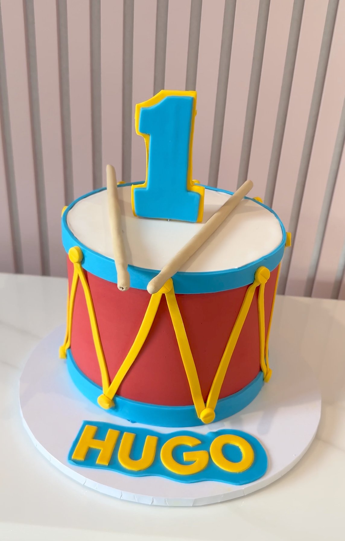 Let the birthday beat drop with this vibrant drum-themed cake! Designed to look like a classic marching drum, it’s topped with edible drumsticks and a bold number topper. Bright red, yellow, and blue colours give it a playful, musical vibe — perfect for little ones who love to make noise and celebrate in style.