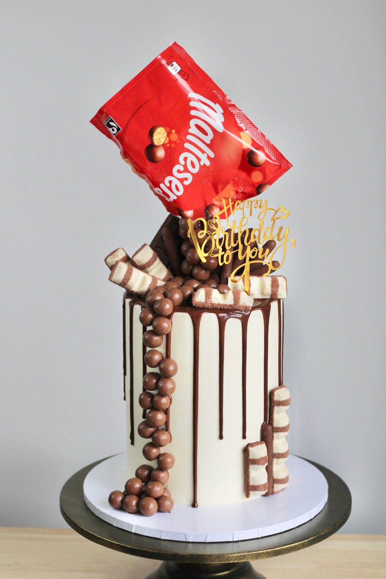 Indulge in the ultimate chocolate lover’s dream with the Gravity Cake! This luxurious creation features silky smooth buttercream, rich chocolate drip, and an eye-catching gravity-defying Malteser bag, making it a true showstopper. Adorned with cascading Maltesers and Kinder Bueno pieces, this cake is the perfect centrepiece for any celebration. Whether for a birthday or just because, this decadent delight is guaranteed to impress!