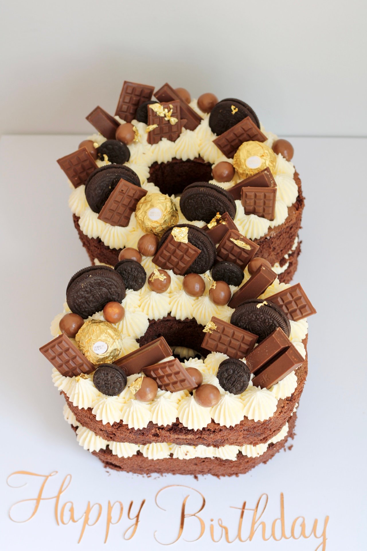 Indulge in pure chocolate bliss with this decadent number cake. Made with layers of rich chocolate sponge and topped with creamy buttercream, this luxurious creation is adorned with an assortment of chocolates, Oreos, and golden accents. Perfect for any birthday or milestone celebration, this single digit number cake can be fully customised for any age between 1 to 9.