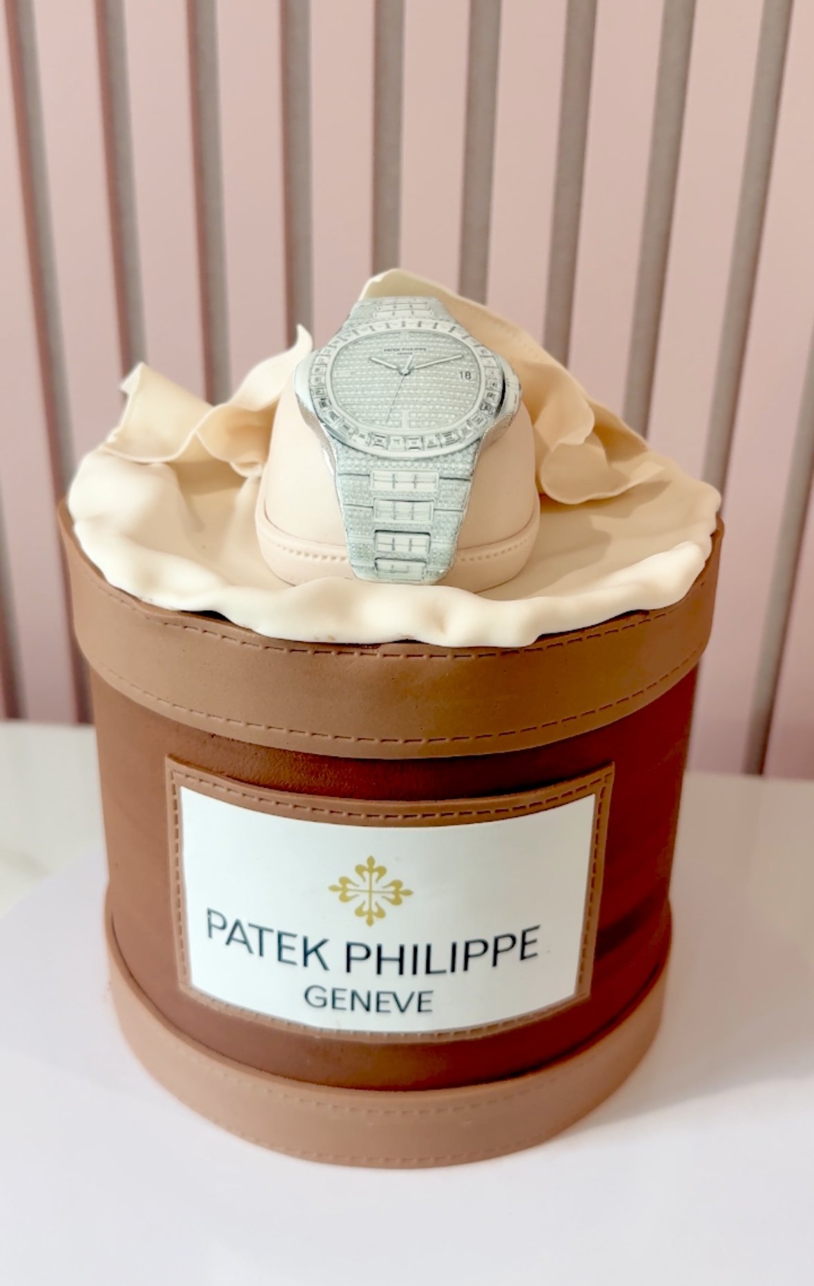 A showstopping cake that captures the elegance of a luxury timepiece. Designed to resemble a premium watch box with an edible watch resting on top, this cake is ideal for celebrating in true style. Whether you’re honouring a special birthday, a promotion, or a retirement, it’s sure to impress. This design can be customised to reflect any favourite watch brand and model — from Rolex to Omega, Patek Philippe to Audemars Piguet.