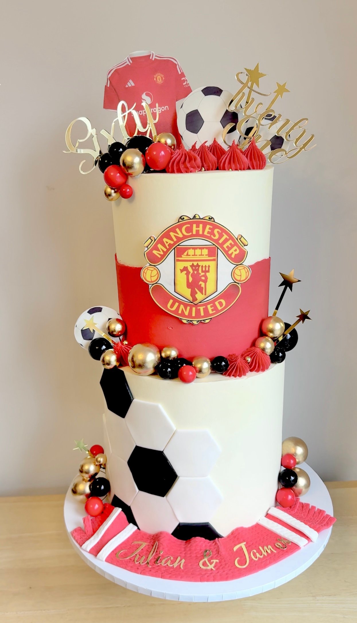 Celebrate in style with the Men’s Football Cake V1, designed for true supporters of the game! This stunning two-tier cake can be customised with any football team’s colours, crest, and jersey, making it the perfect choice for a dedicated fan. Featuring a bold club emblem and football decorations this cake is a showstopper for birthdays, match day celebrations, and special occasions. Personalise it with your favourite team and make it a winning centrepiece!