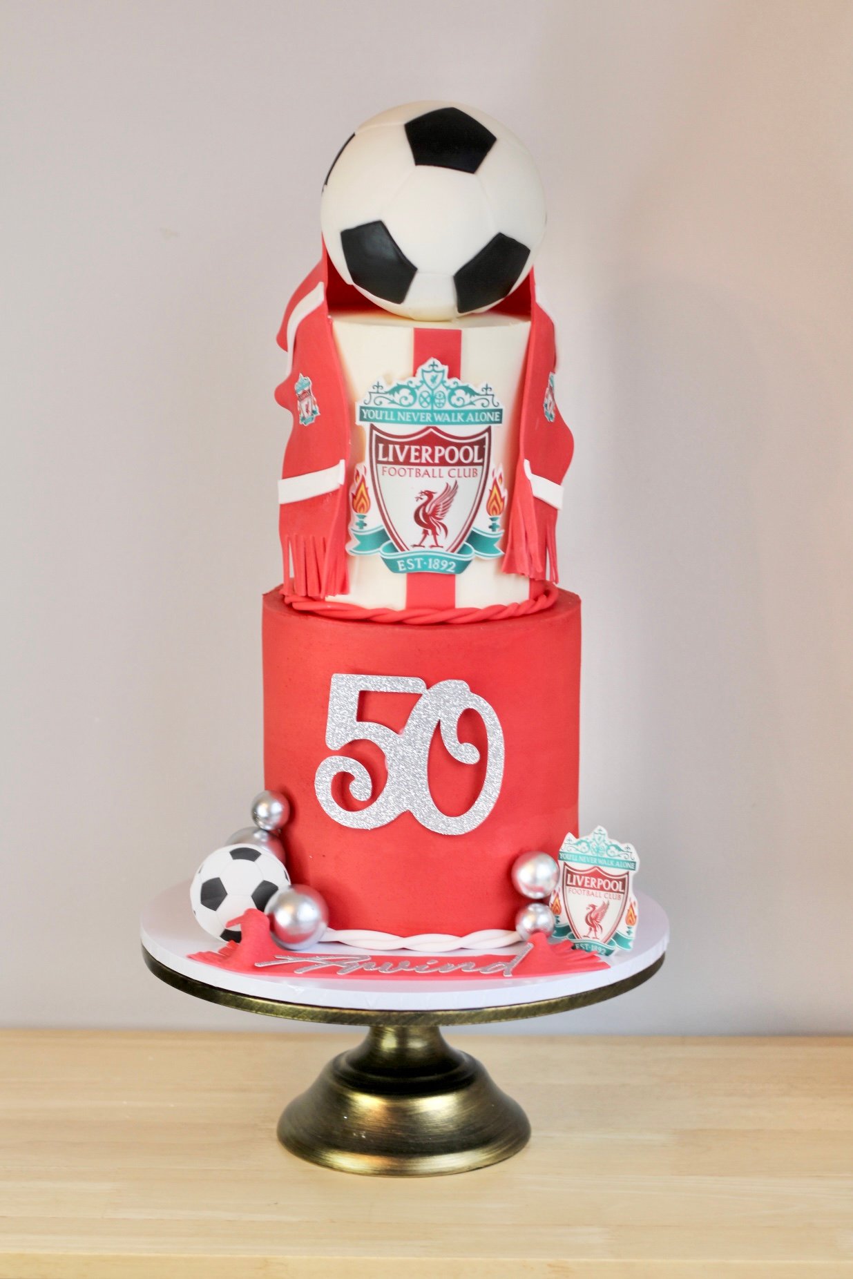 Celebrate in style with our Men’s Football Cake V2, designed for the ultimate football fan! This striking two-tiered cake can be tailored to any football team, featuring your chosen club’s colours and logo. A fondant scarf draped over the cake adds a unique touch, making it the perfect centrepiece for any football lover’s celebration.