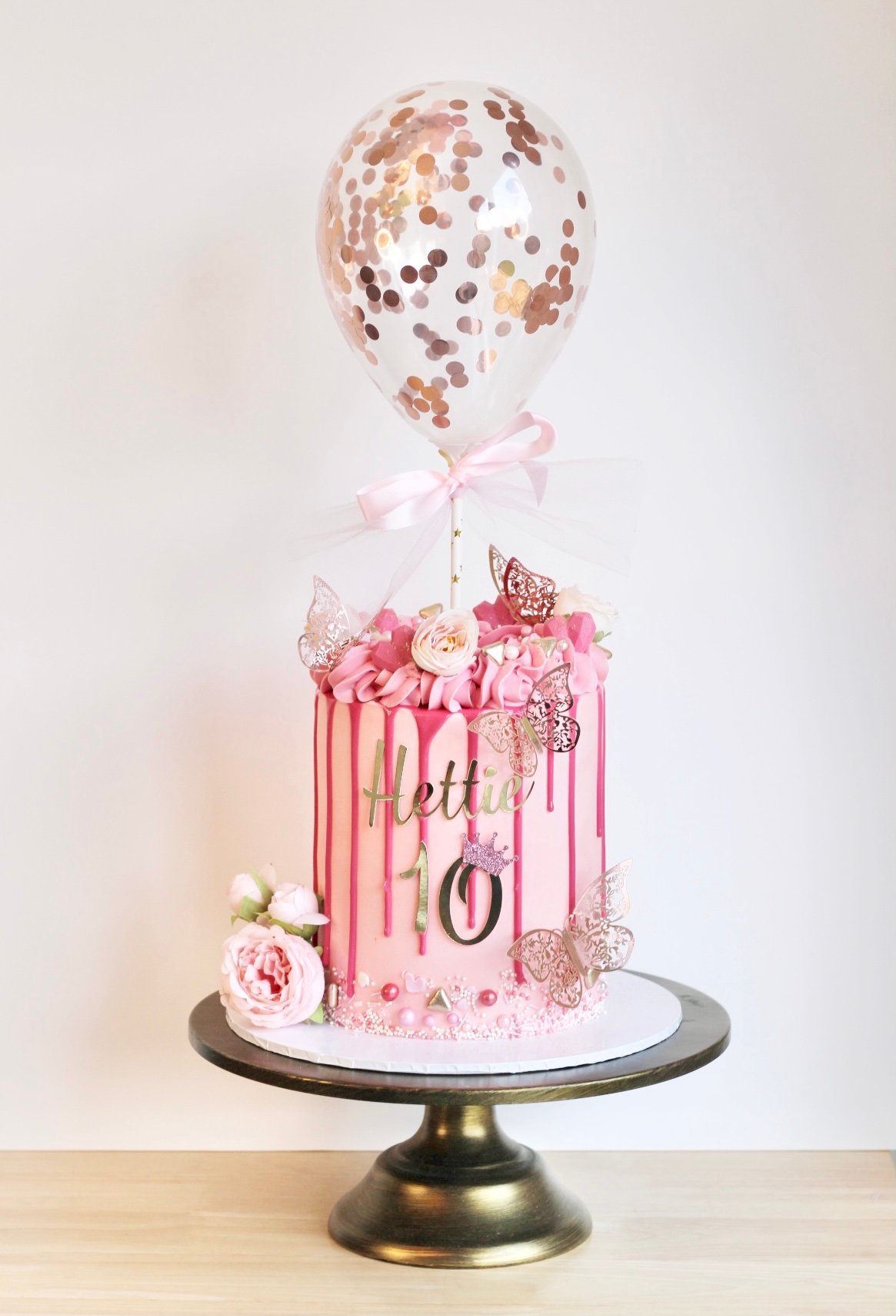 Make her birthday extra magical with this Pink Butterfly Balloon Cake, designed for a celebration full of elegance and fun! Dripping in luscious pink hues and topped with delicate artificial butterflies, roses, and sparkling embellishments, this cake is truly fit for a princess. The showstopping feature? A stunning confetti-filled balloon, adding that extra wow factor! Perfect for any young girl who loves all things pretty and pink.