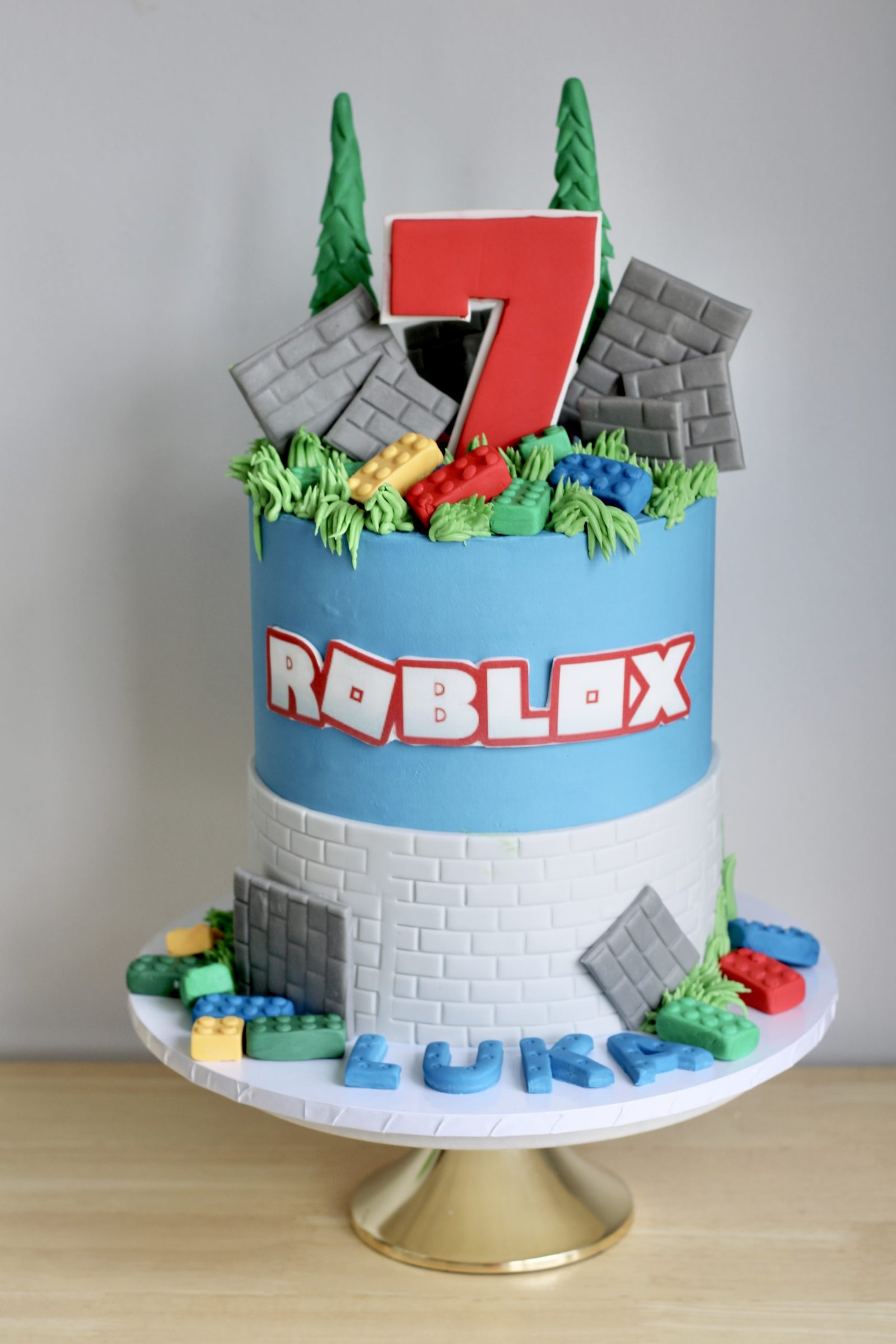 Step into the world of creativity and adventure with this Roblox Cake V3! Designed with a brick wall base, grassy textures, and colourful building blocks, this cake captures the essence of the Roblox universe. Topped with a bold number and iconic logo, it’s the perfect centrepiece for any young gamer’s celebration.