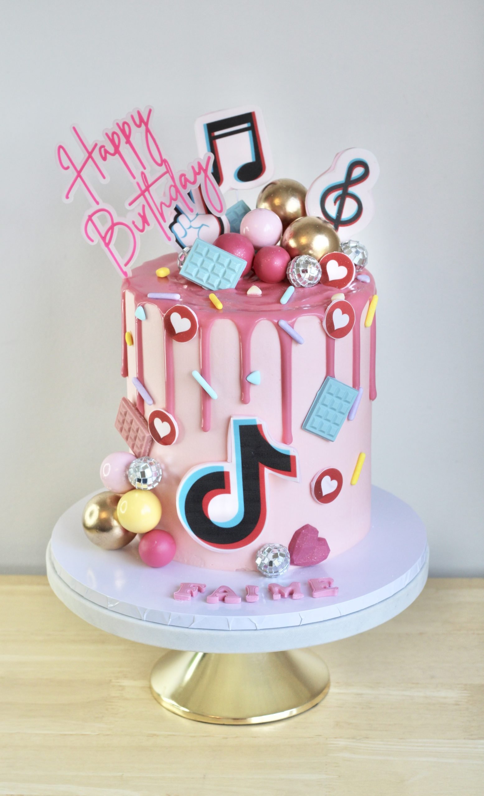 Perfect for social media fans, this vibrant TikTok-inspired cake is a showstopper! Decorated with a pink drip effect, fun musical symbols, and playful edible details, it’s bursting with energy and style. The bold design includes decorative spheres, disco balls, and colourful sprinkles, making it a fun and trendy centrepiece for any celebration.