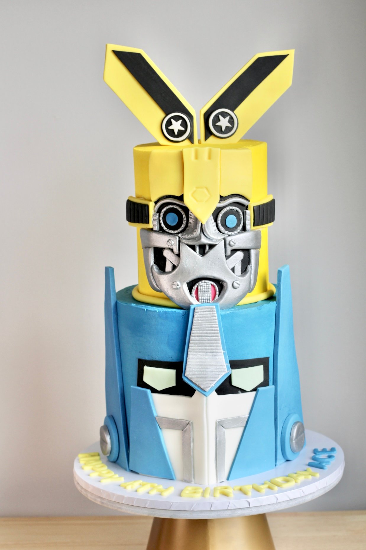 This incredible Transformers Cake is a must-have for fans of the iconic robots. Designed to showcase two beloved characters, the top tier features bold yellow details of the courageous Bumblebee, while the bottom tier highlights the unmistakable blue and silver look of the legendary leader Optimus Prime. The intricate fondant work and metallic accents bring this cake to life, making it the ultimate centrepiece for fans of the ‘Robots in Disguise’!