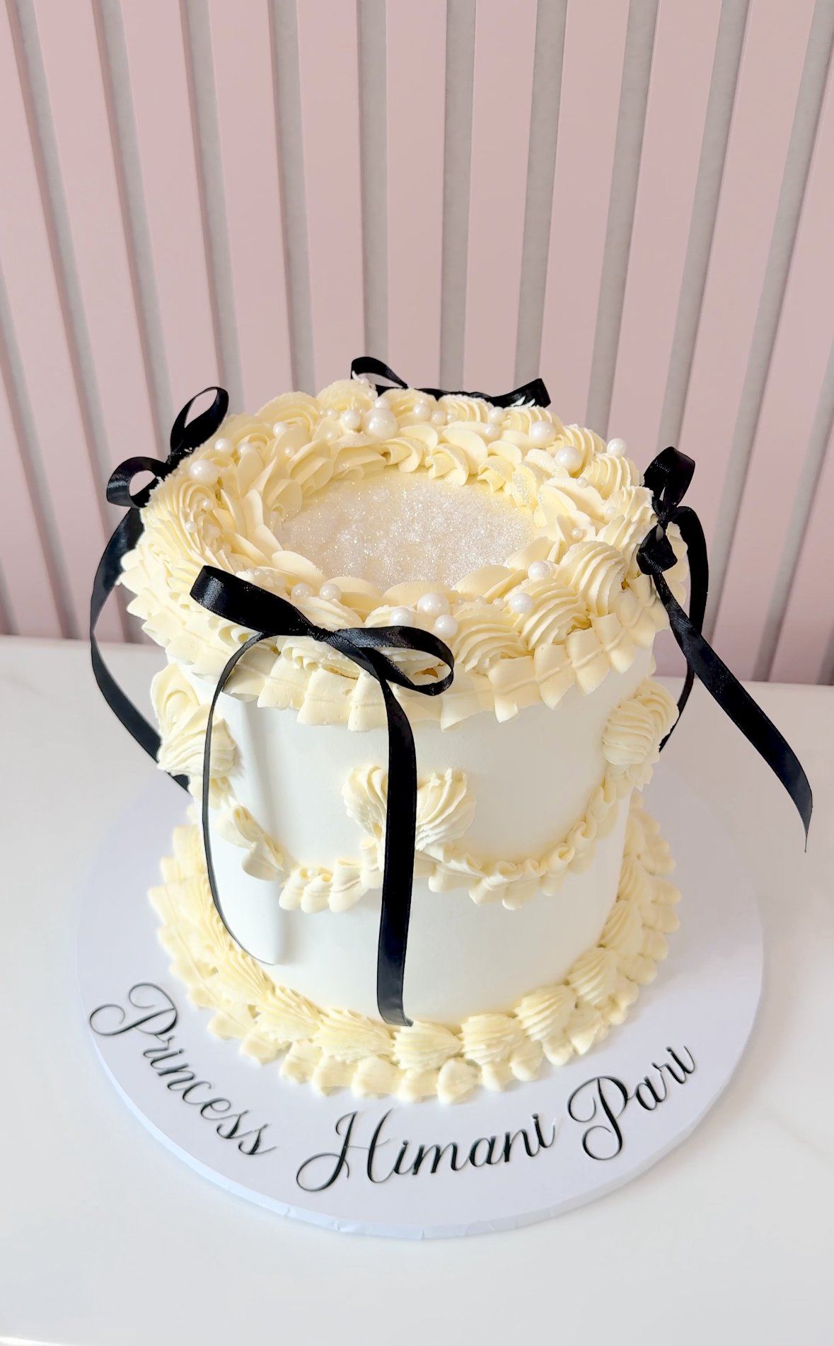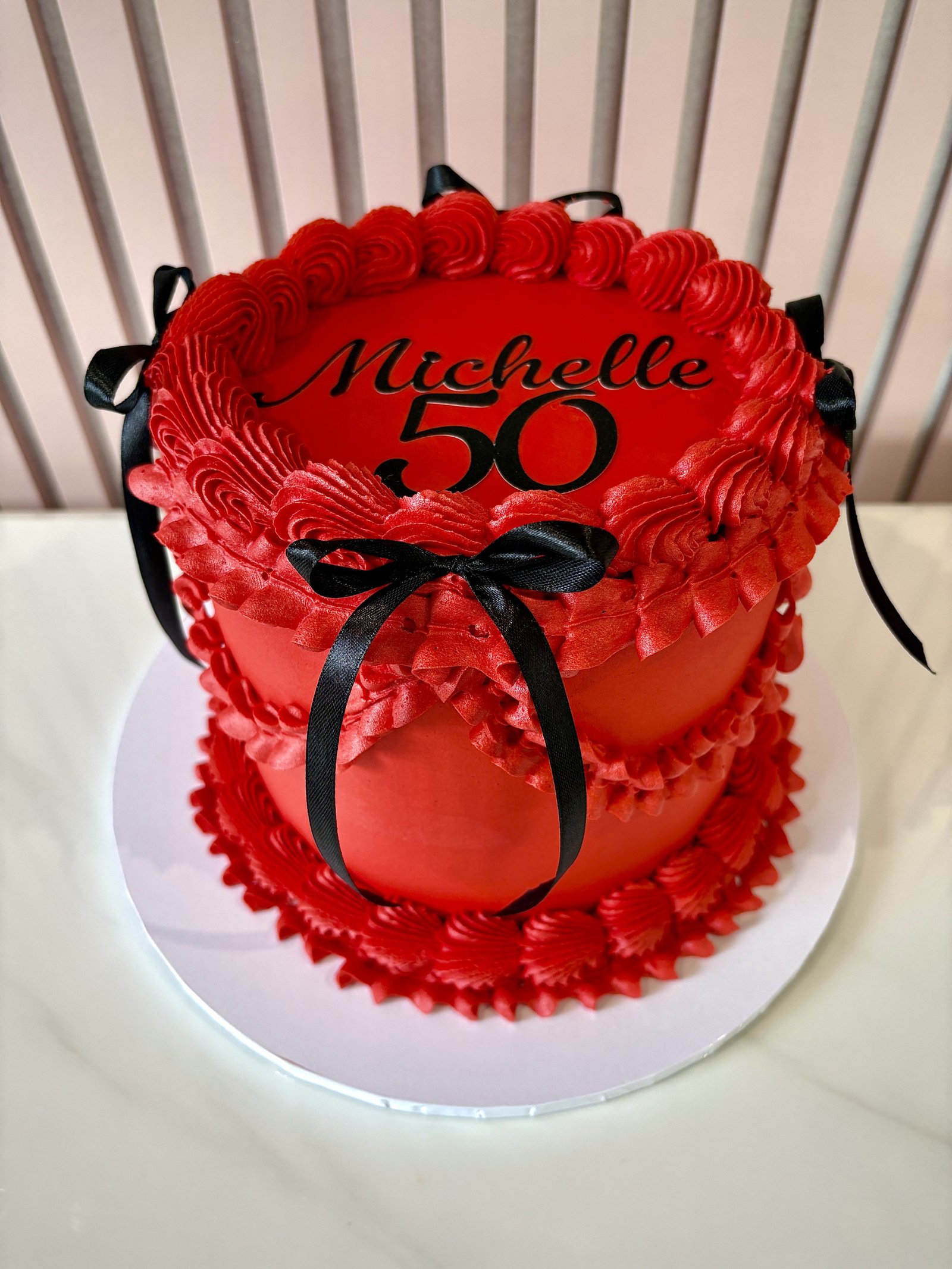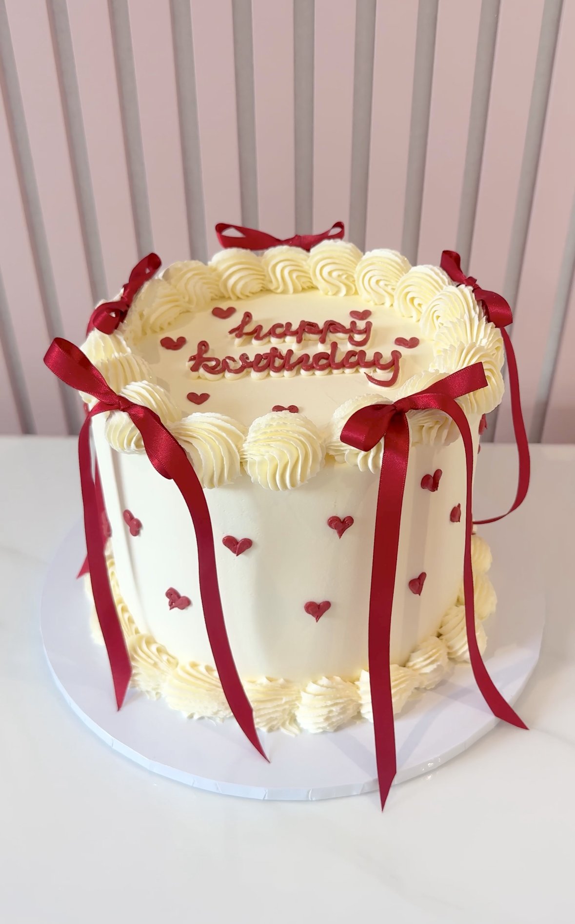 Our Vintage Lambeth Round Cake is inspired by classic celebration cake artistry, featuring beautifully piped buttercream ruffles, swags and borders in the timeless Lambeth style. Elegant detailing, delicate textures and carefully balanced piping create a refined centrepiece, perfect for birthdays and special occasions. The cakes shown in the gallery illustrate just some of the many colour palettes and decorative styles available. Each cake is made to order and can be fully customised to suit your celebration. After placing your order, simply include your preferred colours and message in the order notes. If there is a particular design from the gallery you would like us to recreate, or if you have a reference image you would like us to follow, you are welcome to email it to us after ordering and we will tailor the cake accordingly. Every cake is individually piped by hand, meaning each one is unique while staying true to the elegant vintage Lambeth style.